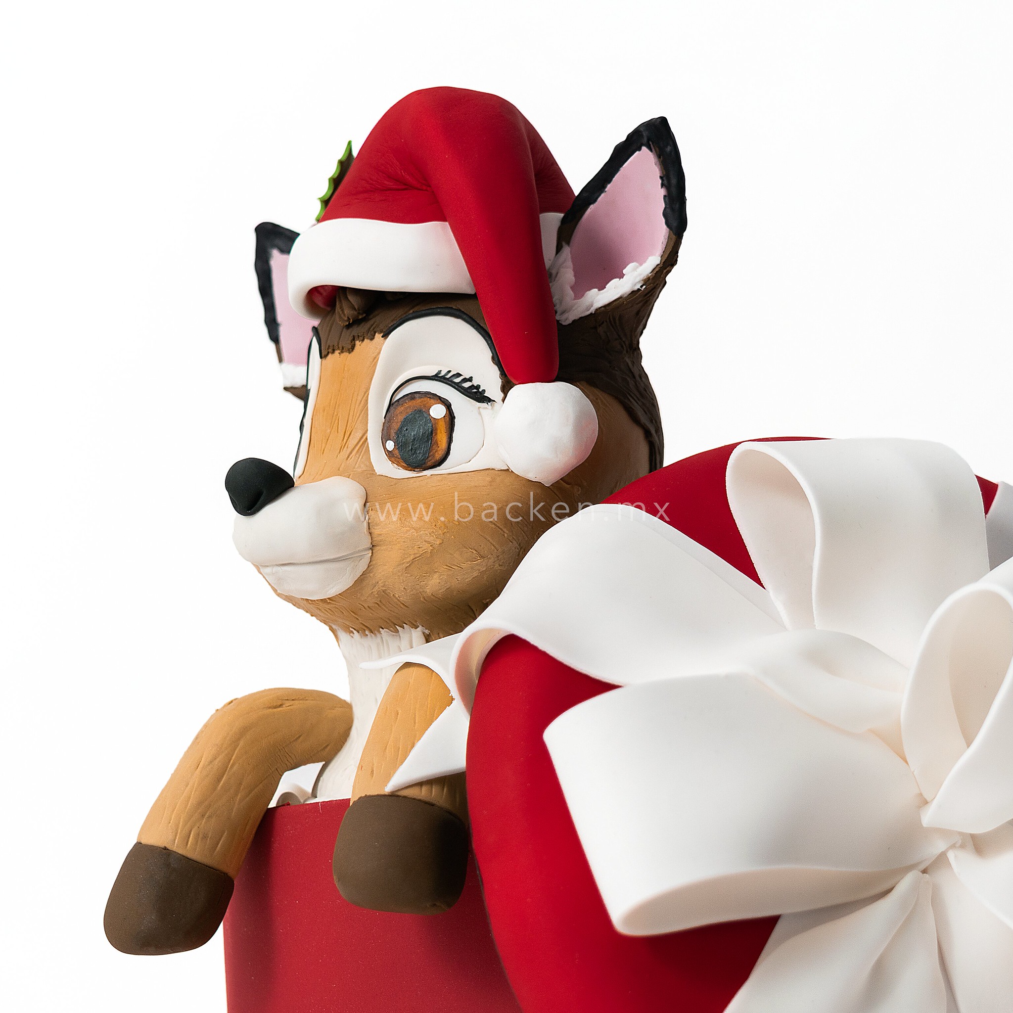 Haz que esta Navidad sea inolvidable con un pastel que roba miradas desde el primer instante. Nuestro pastel navideño personalizado está diseñado en forma de un hermoso regalo navideño, del cual emerge un bello reno esculpido en fondant, lleno de ternura, detalle y espíritu festivo.