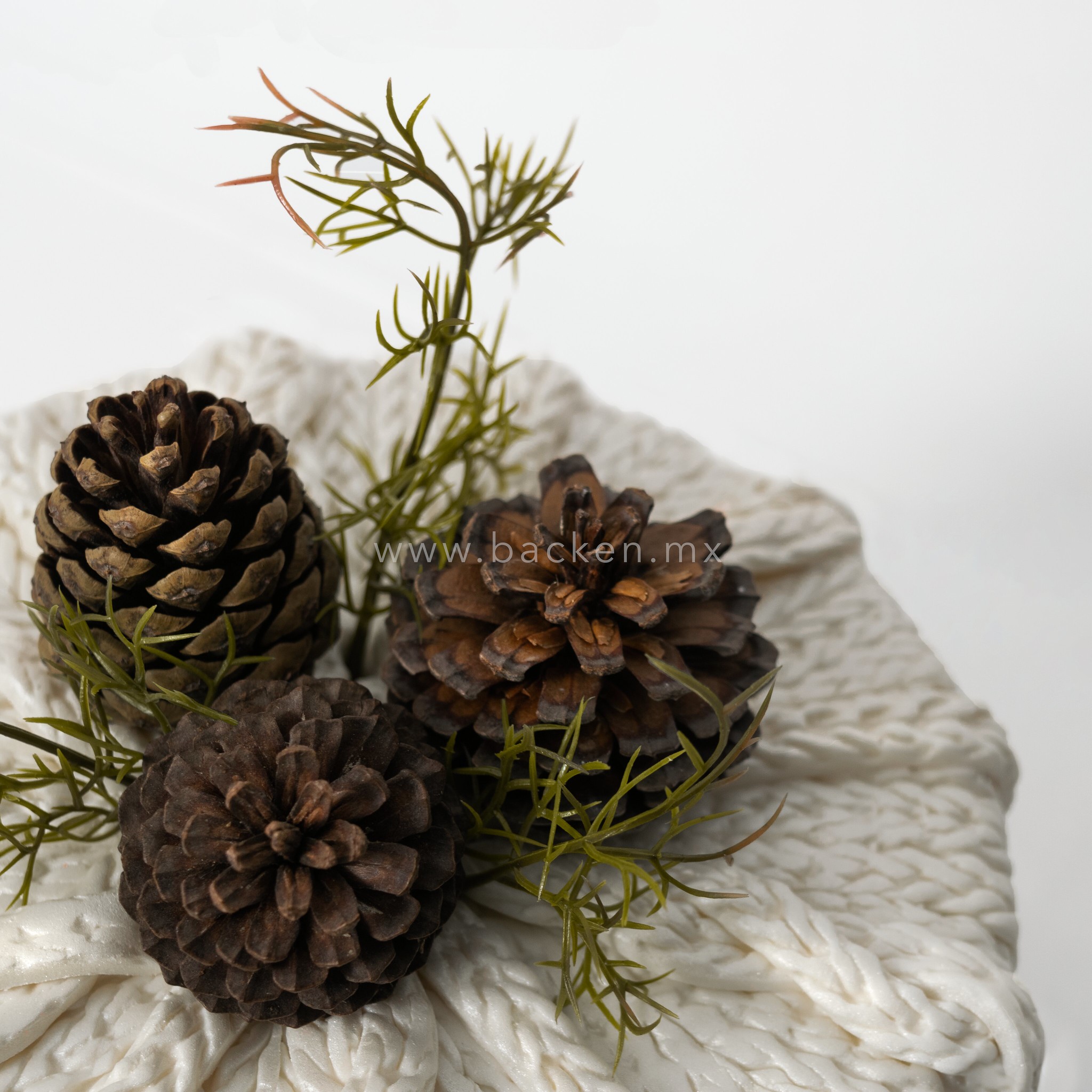 Descubre la elegancia de la temporada con nuestro pastel navideño personalizado, una pieza que captura la esencia más fina de la Navidad. En la parte superior destacan bellas piñas navideñas que aportan un toque cálido y festivo.